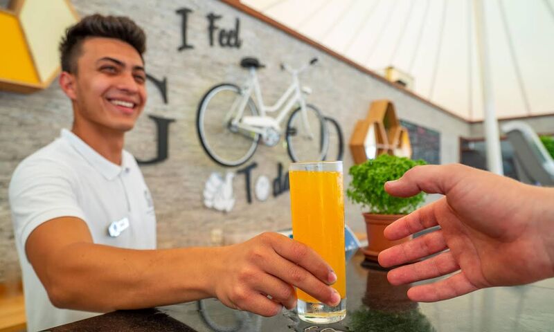 - Tüm taze sıkılmış meyve suları ve türk kahvesi