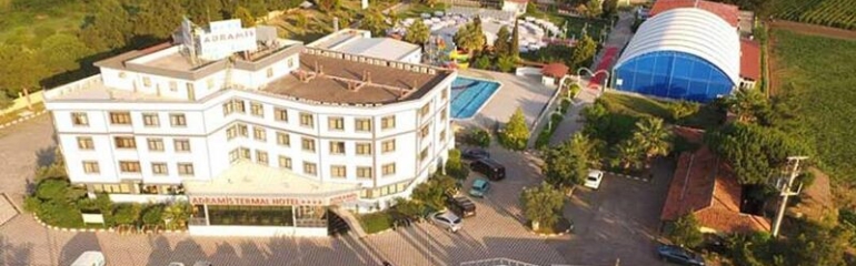 Adrina Termal Health & SPA Hotel; 39.000 m2 alanda Ege’nin Kuzeyinde Kaz Dağları eteklerinde denize sıfır konumu ile 2 Termal Kapalı Havuz, 1 Açık Yüzme Havuzu (605 m2), 1 Çocuk Yüzme Havuzu, Özel Plaj ve İskelesiyle Termal ve Deniz keyfini aynı anda yaşayabilme imkânı sağlıyor. Sade ve şık tonlarda dekore edilmiş odalarda günün yorgunluğunu atarken İda Restoranımızda Türk ve Dünya Mutfaklarının seçkin örnekleri beğeninize sunuluyor. 5000 m2 alan üzerine kurulu Health &Spa merkezinde kendinizi yenileyebileceğiniz terapiler uygulanıyor.